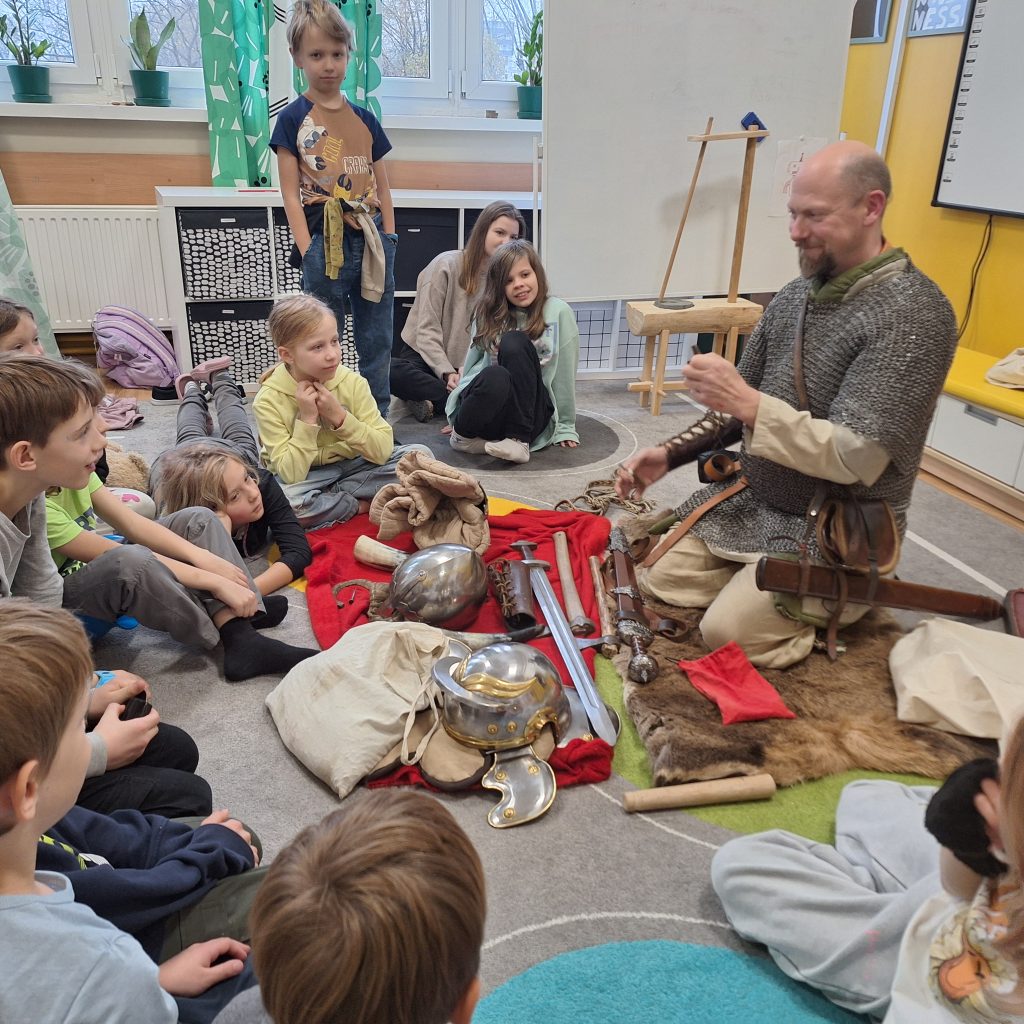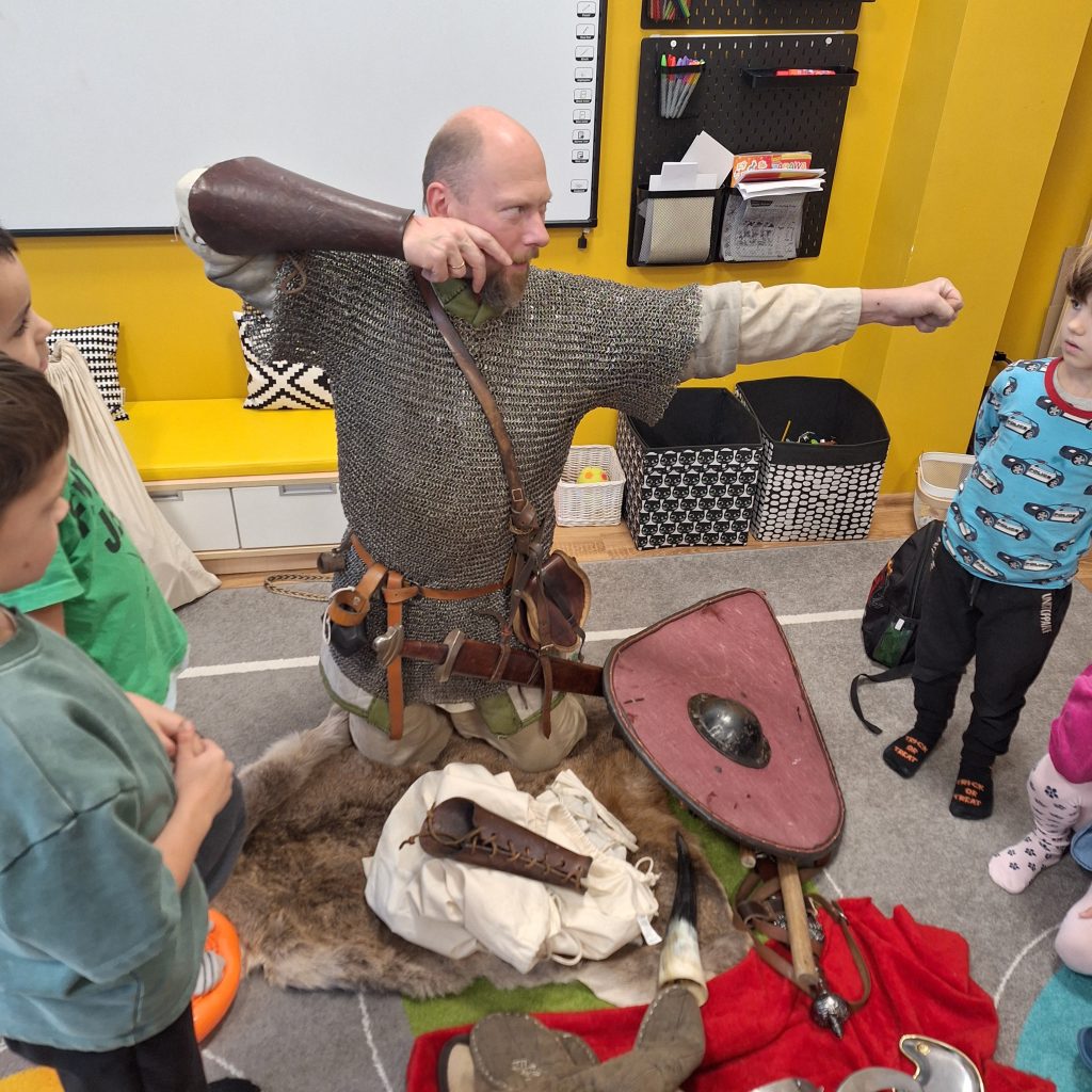 Wrzesień przyniósł naszym uczniom wyjątkową lekcję historii – odwiedził nas woj z epoki średniowiecza i przeprowadził fascynujące zajęcia w ramach Żywej Historii. Stroje, opowieści, rekwizyty – wszystko wyglądało jak z innej epoki!